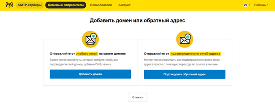 Шаг 1: Решите, хотите ли вы использовать наш API или SMTP