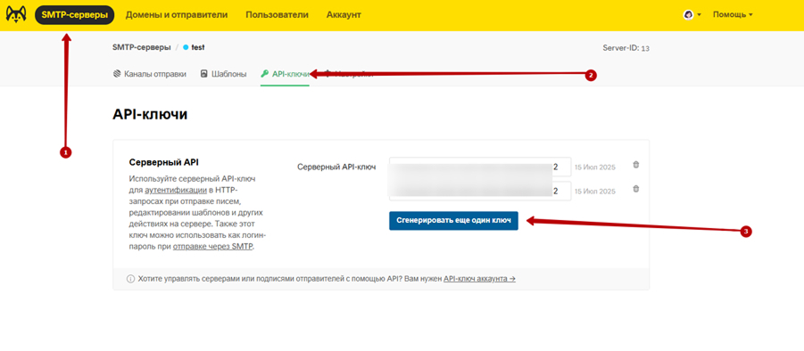 Обновите старый API-ключ на вкладке API-ключей вашего сервера.