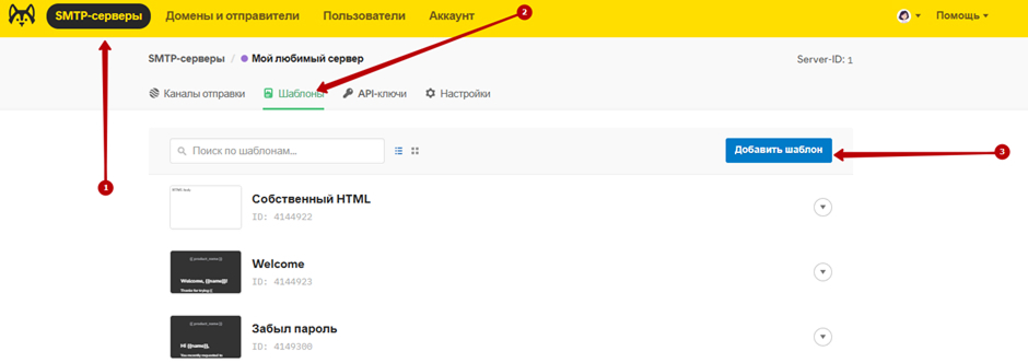 Перейдите в один из своих серверов HaskiMail и выберите Шаблоны.