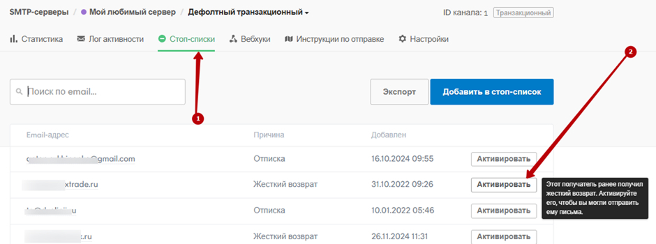 Перейдите в раздел «Стоп-списки» вашего канала отправки.