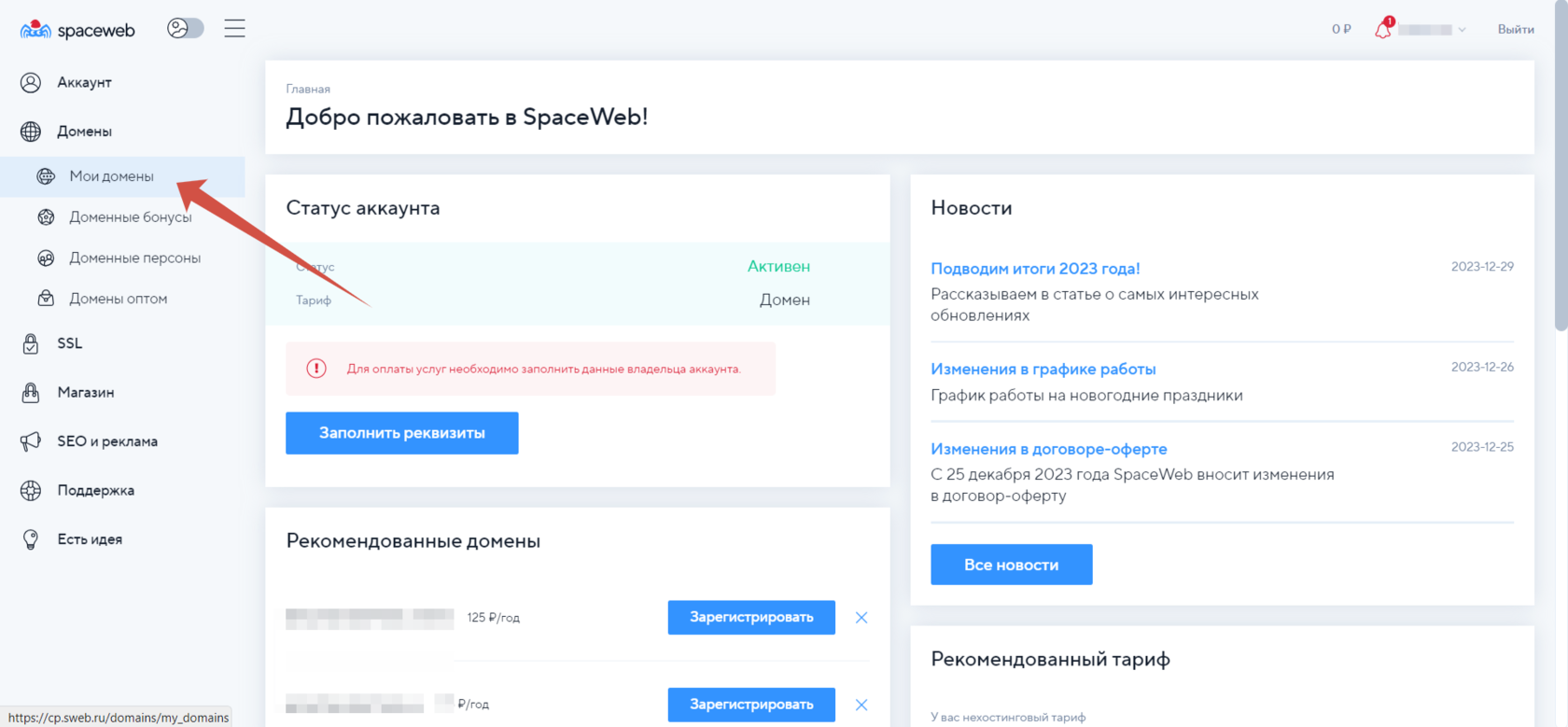 Зайдите в раздел «Мои домены».